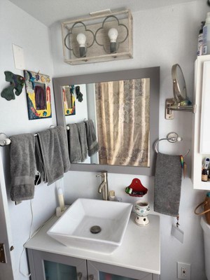 [This review was collected as part of a promotion.] Gablecrest 2 Light Vanity Is more then just a vanity light, as it makes everything beautiful and welcoming in my half bath!!! I have had so many compliments as we remodeled and decided this was just the perfect Gablecrest vanity light, great lighting, very happy with the details and Farmhouse and French design. Very easy to attach to the wall, sturdy, and beautiful!