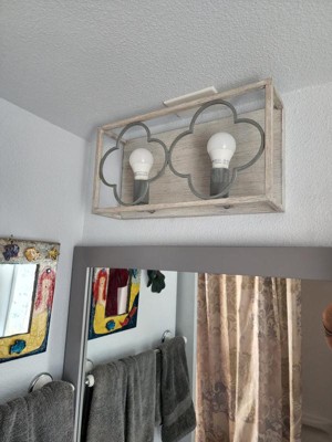 [This review was collected as part of a promotion.] The Gablecrest 2 light 17” wide bathroom vanity light with its modern farmhouse and French country inspiration gives our small half bath a completely different look. The lighting is more than adequate for applying make- up but not so bright that you lose the charm of the light. We replaced an old vanity light and it was an easy installation. The bulbs are easy to install and replace, the wide open space allows me to easily dust the fixture. We are going to be replacing other fixture in our home and I love the entire Gablecrest line.