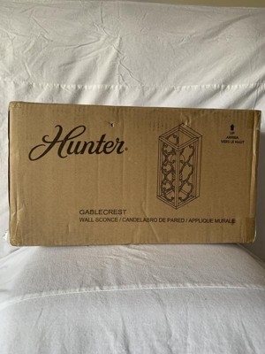 [This review was collected as part of a promotion.] As a member of TryItSampling and Bazaarvoice I received for free to sample and give my feedback on a Hunter Gablecrest 1 Light Wall Sconce. This came and was surprised at how cute and dramatic the one light sconce was. Beautiful distressed color will match anything. The size was perfect 13.00 x 5.00 x 5.00 inches. Wasn’t to heavy so didn’t have to worry about it just falling to the floor. Easy to aassembly per my husband of the house and put it up just for me
