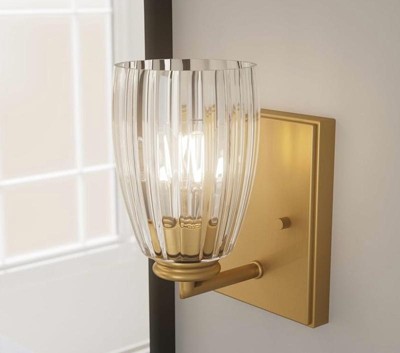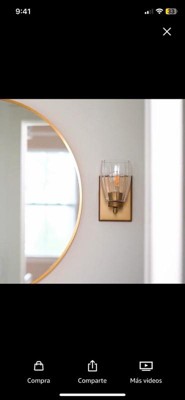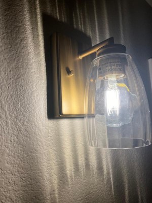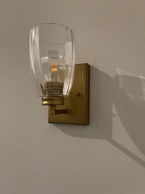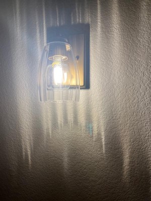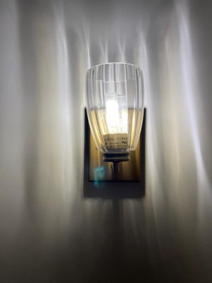[This review was collected as part of a promotion.] This sconce is a great combination of modern and traditional design. Installation was very straightforward as this was a replacement for an outdated fixture. The only negative is the sticker on the inner metal ring that I could not get off. So if you’re super picky you may be bothered that you can see the black words through the clear shade. Overall, I would recommend this sconce as a great way to add some style and brighten up a dark hallway or staircase.