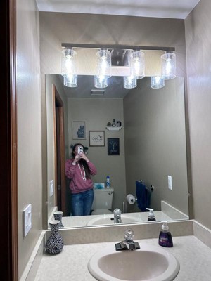 [This review was collected as part of a promotion.] I recently received this Hartland 4 light vanity in brushed nickel and I'm glad I did! My bathroom definitely needed an update and this lamp is beautiful and fills a large space with beautiful lighting!