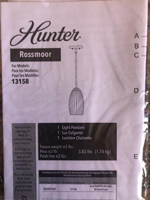 [This review was collected as part of a promotion.] I got this Hunter - Rossmoor 1 Light Mini Pendant a couple of weeks ago. Packaging was really good and it was super nice looking. Didn't take long to install and it looks great. And has the ability to be shorter if need be.