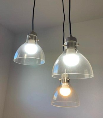 [This review was collected as part of a promotion.] The Van Nuys 3 Light Round Cluster light could work as a replacement for an outdated light fixture. It is versatile in style and there is the ability to customize the style and type of bulb you want in the fixture itself. Each wire is adjustable to any length and it comes with 10 feet of wire for each bulb. This can create a problem if you do not have extra space above the fixture and want a shorter length, because it will leave a gap between the plate and ceiling. It is fairly easy to install, but is heavy and you need a second person to help if you do not adjust the wires prior to mounting. The wires to the lights are creased and do not come out when you hang it, hopefully the wires will straighten out over time.