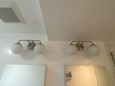[This review was collected as part of a promotion.] This beautiful light fixture made a wonderful addition to my bathroom. Installation was very straight forward and I didn't have any issues. The brass color and globes remind me of a unique mid century/modern look that I absolutely adore! It requires two bulbs and gives off a great amount of light with two 60 watts. Overall, I would definitely recommend this light fixture to easily update any room!