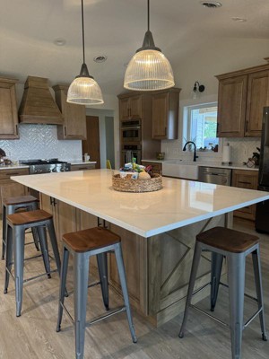 [This review was collected as part of a promotion.] This light fixture is absolutely beautiful! Installed this over our kitchen island and it looks stunning! It is great quality, very sturdy. I have already gotten so many compliments!