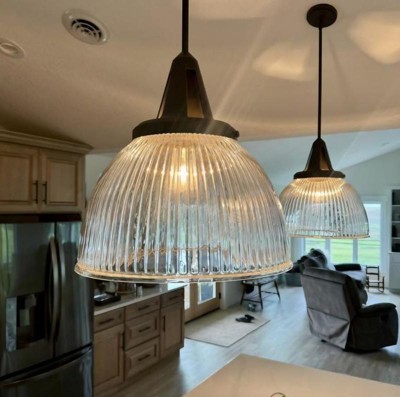 I don’t know why these lights are not absolutely viral . I have been looking for a vintage feel (I was leaning to converting antique halophane lights into island pendant lights) - prism type glass . This is it . We had to do some cutting of the down rods to make it adapt to our slanted ceiling needs - but the outcome is more than I could ever hope for. Hunter needs to marked more towards these looks & promote .