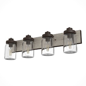 Finally, you can complete the farmhouse space of your dreams. The Devon Park�s rustic vanity fixture brings unmatched illumination to your space. With its distressed finishes and charming details, this vanity light elevates your space with its rustic and elegant design. This indoor damp-rated fixture makes it a staple in indoor spaces exposed to humidity. Mix and match with other fixtures from this collection or from our ceiling fan designs.. Rated for indoor spaces exposed to humidity. Requires 4 E26 bulbs. Bulbs not included.. INDOOR-DAMP RATED: For use in indoor spaces exposed to humidity like bathrooms and laundry rooms.. BULB RECOMMENDATION: Maximum 60 W per light bulb or equivalent LED bulb. Bulbs not included.. PICTURED HERE: Match our image using ST64 Edison light bulbs.. COORDINATING COLLECTION: Works with Devon Park ceiling fan collection. WARRANTY: One-year limited warranty backed by the trusted experts at Hunter.,