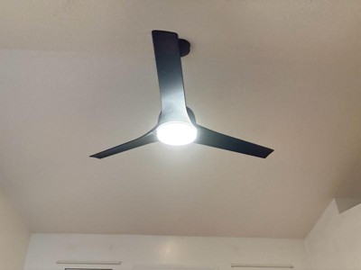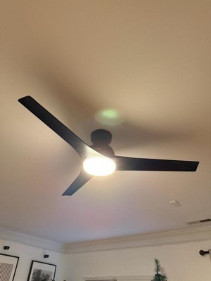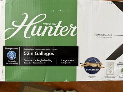 [This review was collected as part of a promotion.] I installed the Hunter Gallegos 52” in matte black and it’s exactly the sleek, modern look I wanted. The 3-blade design plus Hunter’s SureSpeed airflow cools my living room quickly without the wobble or hum I’ve had with other fans. The integrated LED gives a bright, even glow and the included wall control makes it simple to adjust the light and fan speeds (there’s even a “favorite” preset). Installation: Straightforward with clearly labeled hardware; but it was not easy or for a normal person job.. you really need to know a little about wiring in case your current system is not set up like this one. Swapping in the wall control was pretty simple. Again, always turn power off to avoid any damage. Noise level: Whisper-quiet in my space—even on higher speeds. Appearance: Minimal and stylish; the flat matte finish hides fingerprints well. Where it works: It’s damp-rated, so it can go indoors or on a covered porch. Wish list: I’d love a handheld remote in addition to the wall control and the option to choose light color temperature. Overall, strong airflow + quiet performance + clean design = a great upgrade for a large room.
