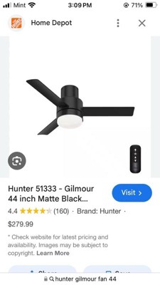 Hunter 44" Gilmour Lighted Ceiling Fan Matte Silver Finish - Modern Design for Indoor/Outdoor Use with Integrated LED Light