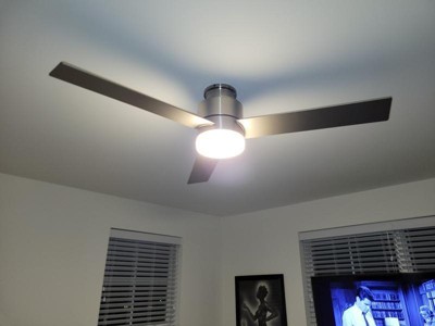 [This review was collected as part of a promotion.] Works great for our space - the brightness is the perfect amount. Installation seemed pretty simple. My husband installed it. I love that it comes with a remote. Nothing is worse than having to get up to turn on a fan ;) I love the simple and slick design as well.
