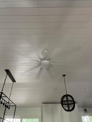 [This review was collected as part of a promotion.] I actually got this to hang in a barn to move air for the animals. It works really well. Large enough to move the air, but small enough to fit between light fixtures. I’m a bit worried about the white color getting dirty over time, but that isn’t anything a good cleaning can’t take care of. Overall very happy. Easy install, good air movement and some supplemental light. Would recommend.