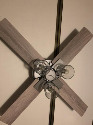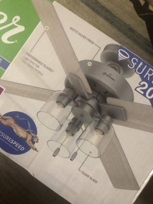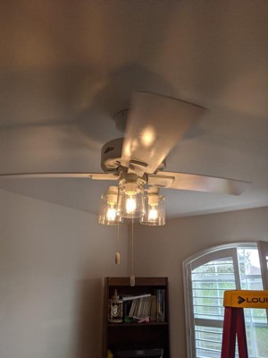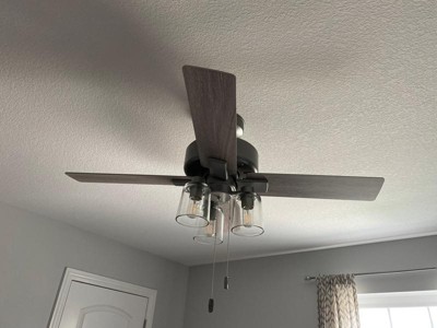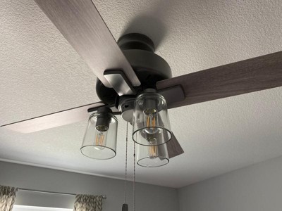 [This review was collected as part of a promotion.] The led lights on this fan make the light bright, which I love. However, due to the fact there are only four paddles the fan itself is a bit on the noisy side, making a chopping sound kind of like a helicopter. Hunter fans are known for being quiet, but this one misses the mark a little. It does look really nice though, I love the globes!