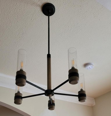 [This review was collected as part of a promotion.] This was the first time I have ever changed out a chandelier and it was relatively easy to do. The directions were mostly straightforward although the pictures could have been a little bit bigger to show which exact parts everything was referring to. The chandelier itself is beautiful and has a nice cabin feel to it. Even though I live in the suburbs, it works with our kitchen/living room. It was easy to get bulbs at the local big box store and I had everything installed within a day.