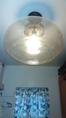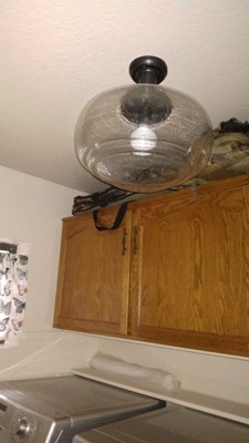 [This review was collected as part of a promotion.] This is a very attractive seeded glass light fixture. We opted to install it with the semi flush mount style. It is definitely a big pendant light. It looks so nice in our laundry room. We did some remodeling in that room & we wanted to get rid of the contractor grade light that came with the house. We will be getting an Edison bulb to give it the elegant antique look it deserves. It was easy for my hubby to install & the directions were easy to follow.