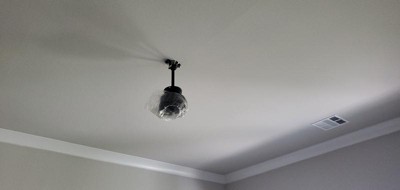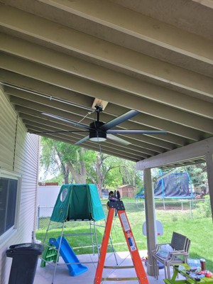 We recently purchased this fan for our new patio addition. It is beautiful, quiet, and very easy to install with a tall ladder.