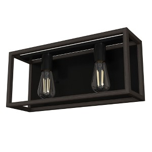 Material: Metal, Finish Color: Matte Black, Width: 17", Height: 7.5", Depth: 5", Backplate Width: 17", Backplate Length: 7.5", Lamping Type: Incandescent, Number Of Bulbs: 2, Wattage: 60 Watts, Dimmable: Yes, Moisture Rating: Damp Rated