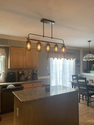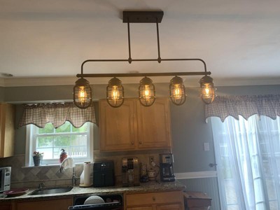 [This review was collected as part of a promotion.] I got this a few weeks ago to spruce up my kitchen bar and add more lighting to my kitchen overall and I’m so glad I did it was a easy install I took my old one down and had this one up in about a hour in a half from start to finish doing it by myself and to me it was worth it. I went from a three light to this five light and I have so much more light added to my kitchen it’s just what was needed. It looks great I love the design how it reminds me of a lantern And looks absolutely perfect with my set up I have all white cabinets with matte black fixtures and absolutely love the way this look compared to what I had and in my option the quality is spot on perfect I absolutely love ours.