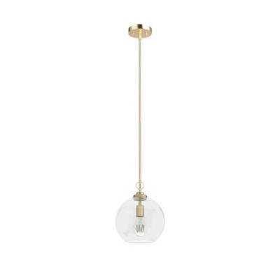 Simple and versatile, the Van Nuys pendant light is at home in a variety of style spaces, from modern industrial to glam. Subtle detailing like the knurling and thumb screws make a big impact with the large, clear glass shade and metallic finishes. Create a cohesive look in your home by pairing this modern pendant light with other fixtures from the Van Nuys collection. Includes one 6 inch downrod and four 12 inch downrods to allow height adjustments from 31.25 inches to 79.25 inches. Requires 1 bulb; bulb not included Maximum wattage 60 per light bulb or equivalent LED bulb Rated for indoor spaces only Light fixture diameter 16 inches Alturas Gold finish No. of Rods: 5 / Mounting Direction: Down / Assembly Required: Yes / Canopy Included: Yes / Shade Included: Yes / Canopy Diameter: 5.00 / Rod Length(s): 12.00 / Dimmable: Yes. ,