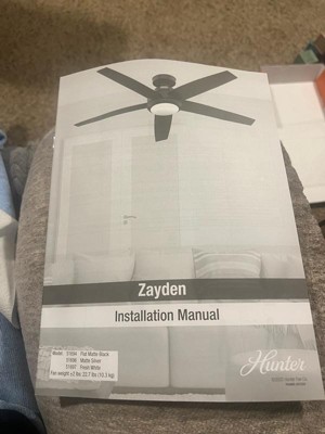 Introduce a modern look to your home’s largest living spaces with the Zayden ceiling fan and LED light kit. Edgy and chic, this fan is engineered with Hunter’s SureSpeed Guarantee to deliver airflow you can feel while maintaining a quiet, wobble-free performance. Kick your game room up a notch or give your dinner guests something to talk about with the Zayden ceiling fan.