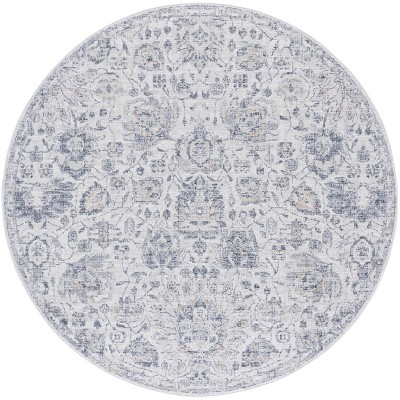 Introducing our exquisite Transitional Ivory/Dark Grey Round Area Rug, a timeless addition to any living space. This 6'-7" X 6'-7" masterpiece boasts a luxurious pile height of 3/8", providing both comfort and elegance to your floors. Expertly crafted in Turkey using power-loomed technology, the rug ensures a highly durable and long-lasting presence in your home.