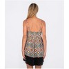 A: The dress features an Aztec pattern and a V-neck collar style for a feminine silhouette.