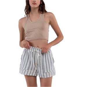 Presenting Hurley Women's Nova Casual Walking Shorts, designed with comfort and style in mind. These lightweight, 100% cotton shorts feature a modern striped pattern and are adorned with a logo and beaded front pockets. The drawstring waist is accentuated with wooden beads, adding a unique touch to these flat-front shorts.