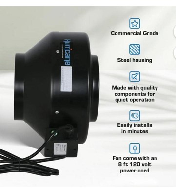 [This review was collected as part of a promotion.] If you need serious ventilation, the Hurricane Commercial Inline Fan 8" is a fantastic choice. This fan moves a ton of air (745 CFM) which makes it perfect for grow tents, garages, or any place where stale, hot air needs moving. Despite its power, it's surprisingly quiet. The durable steel construction also means this fan is built to last. Installation is straightforward with the included mounting brackets. Pros: Powerful airflow Quiet operation Durable build Easy to install Cons: May be overkill for smaller areas Overall: I highly recommend the Hurricane Commercial Inline Fan 8" for anyone needing a reliable and powerful ventilation solution.