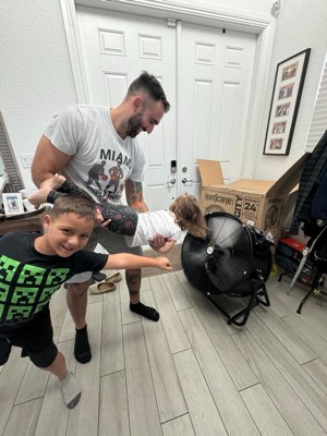[This review was collected as part of a promotion.] This fan is awesome! It’s so powerful, but light and stable too. Most fans I’ve used similarly aren’t as stable and move around when on the higher settings. I love this is made of metal, making it perfect for my garage and long term use!