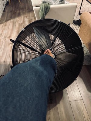 [This review was collected as part of a promotion.] Holy cow this fan is wonderful. It is a huge fan that pushes a ton of air. Perfect for the garage on those hot days. Plus it oscillates a full 360 degrees.