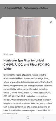 Hurricane HF9699-01 Advanced Pool and Spa Filter Cartridge Replacement, White