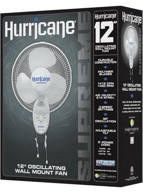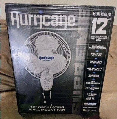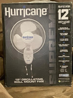 [This review was collected as part of a promotion.] I wish that the name brand was more predominant on the box. I'm assuming that the name brand is hurricane fans. That being said the hurricane fan supreme 12 inch oscillating wall mount fan has a three-speed setting and 90° turn. As long as one follows the easy to read instructions that are included, the oscillating setting should have no problems. It fits perfectly on the wall. Size is adequate. Movement is sufficient. I was quite surprised with the functionality of the wall mount. But it works. Fan blades move smoothly with the proper amount of air for the size of this product.