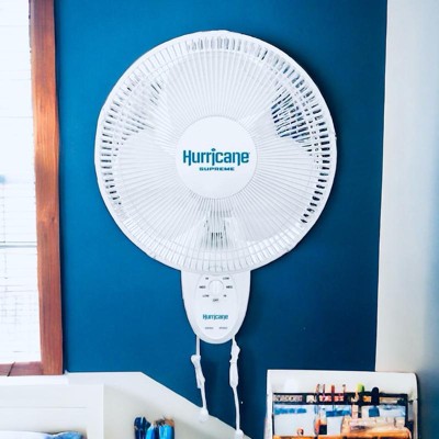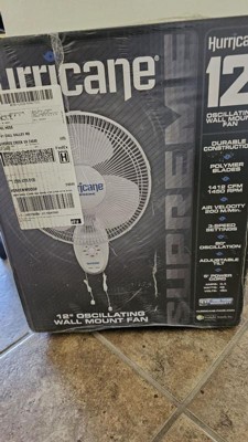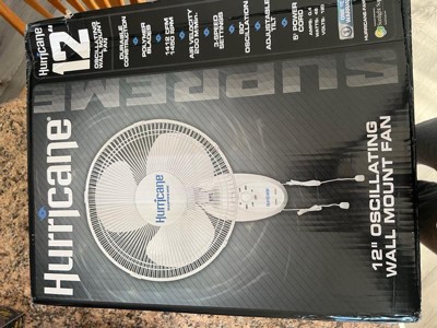 Hurricane Supreme 12 Inch Oscillating 3 Speed Portable Wall Mount Fan, White