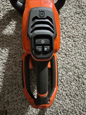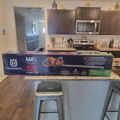 [This review was collected as part of a promotion.] The Hedge Master Husqvarna arrived in perfect shape and packaging. The tool looked great in orange color. The blade was protected with a sheath cover and was easy to remove. The charger did not make any noise while charging like the lawn mower chargers usually do. There was a power button on the battery to check the amount of charge. The power button on the hedger was a great feature for safety. There were two ways to hold the hedger and it worked great.