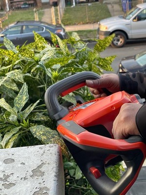 [This review was collected as part of a promotion.] With a large cutting capacity, this cordless hedge trimmer can handle heavy-duty clearing and trimming of branches up to 1 inch thick. The convenient un-jam button opens the blades for easy clearing. Comfortable tri-handle grips provide 30 percent more reach than comparable hedgers. This battery hedger has a durable, highly efficient brushless motor and an active cooling system to provide consistent power and longer battery life. The battery hedge trimmers come with a lithium-ion battery and a charger, so you can get to work right away. Husqvarna lithium-ion batteries are interchangeable among all Husqvarna handheld landscaping tools for flexible use.