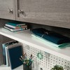 Versatile craft storage solution for organized workspacesAdjustable shelving accommodates various supply sizesSuitable for craft rooms, offices, and kitchensBrown finish complements diverse decor stylesDurable construction with smooth-operating doorsCompact dimensions fit small spacesQuick and easy assembly processPegboard back for customizable tool storage