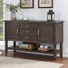 A combination of modern and traditional styling, the Hutchins Server with turned legs and clean lines is an instant classic. Three drawers and two doors add valuable hidden storage and a bottom shelf adds an area for storage or display. Finished in a warm, dusty espresso, this piece will anchor any dining area with elegance and style. Part of the Hutchins Dining Collection.