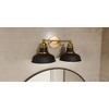 The traditional style of the Huxley bath light collection features elements of industrial design. Matte black metal shades are accentuated by an aged brass finish for a classic black and gold pairing. Choose from a variety of size options in this versatile collection to personalize your bathroom vanity lighting today.