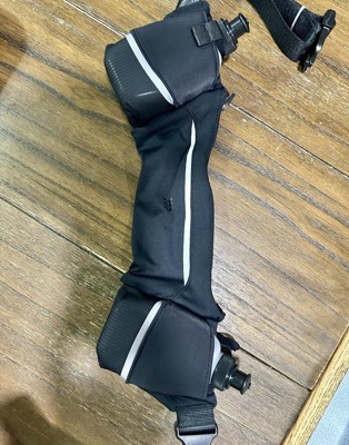Hydration running belt is designed to help you carry water bottles while on the run. Features a double bottle holder to allow easy one-handed access, while a zippered pocket offers just enough room to hold your phone, lip balm and other essentials. Adjustable buckle waist strap helps you find the perfect fit.