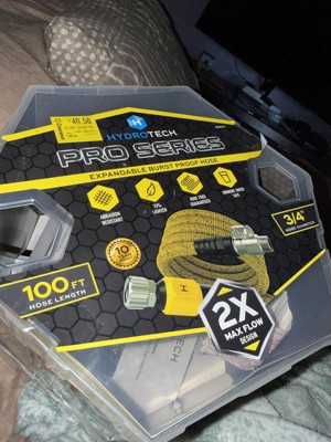 The HydroTech Pro Series 50 ft. Expandable Burst-Proof Hose is perfect for all your watering needs and can be easily transported to anywhere you work. Our Pro Series expandable hose is designed for heavy duty cleaning and large jobs. Great for farming and agriculture sites, it gets the job done faster. Guaranteed not to burst or break, it is still lightweight and durable. The hose flows with optimal water pressure at all times thanks to Max Flow Technology which allows water to flow 2x faster than other expandable hoses on the market. Includes a 10 Year Warranty.