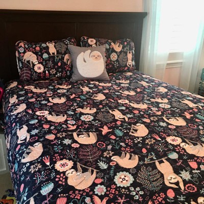 Lush Décor Hygge Sloth Quilt Set Update your child’s bedroom with this adorable reversible quilt set featuring sloths, birds, flowers and more printed on the front, and a more subdued pattern of little flowers on the back. This set will truly bring your child's imagination to life!