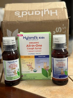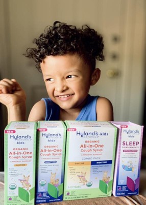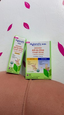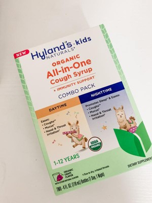 Hyland's Organic Kids All-in-One Cough Syrup Combo is a trusted remedy for families, combining daytime and nighttime formulas to effectively soothe coughs and promote restful sleep. Made with organic ingredients like honey and elderberry, it provides natural relief from throat irritation and mucus. Parents appreciate its pleasant taste, making it easy for kids to take. This product is a must-have for households with children, especially during cold and flu season.