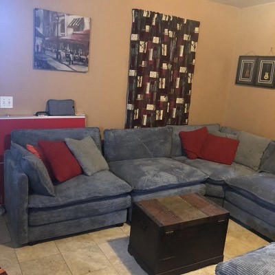 I love the corduroy texture of this modular 7 seater sectional! It is comfortable and firm just the way I like it. Then Color is nice. I originally thought it was going to be a much darker gray from the pictures that were provided. It turned out to be medium gray,not a charcoal gray as thought. But I love the color anyway!! The customer service at the actual furniture warehouse/ store for this particular brand HYLEORY is impeccable. The Gentleman that I spoke with was great. I called and left a message. He called me back the next business day. He addressed my concerns for the shipping. I really appreciate the excellent customer service. If I would change anything it would be the legs, don’t get me wrong they are fine, but if… I would make them 3 inches wider, and two inches taller. I Love this sectional!! Perfect for movie night!! It looks GREAT It Feels GREAT!! What more could you ask for!! Thank you for my beautiful sectional!!