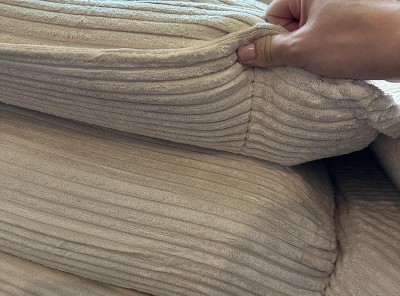 - Premium Corduroy Fabric: This sofa is made of corduroy fabric, which is soft and durable. If you have pets at home, you don't have to worry about them scratching the sofa. Even if the sofa is dirty, cleaning is very simple, you only need to use a damp cloth to wipe it clean