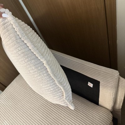 Product arrived with what looks like a blood stain on the white corduroy and is not good quality at all. The pillows just slide right off of the chair and the pillow your back is supposed to rest on is razor thin 😭