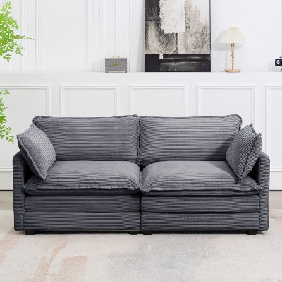 HYLEORY 76.8" Loveseat Sofa for Living Room, Modern 2 Seater Circle Velvet Sofa Couch for Bedroom Office, Dark Gray