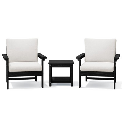 Product Name: Hyleory Eco-Friendly HDPE Patio Seating Set with Cushions & Side Table - Black