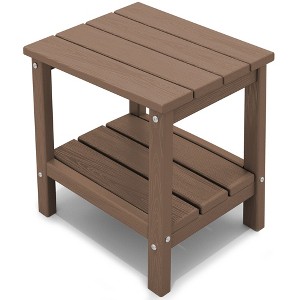 Product Name: Hyleory Double-Tier Patio Adirondack Side Table, Outdoor HDPE Square End Table in Brown