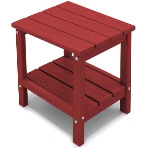 Product Name: Hyleory Double-Tier Patio Adirondack Side Table, Outdoor HDPE Square End Table in Red