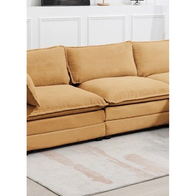 HYLEORY Sectional Sofa with Ottoman, L Shaped Free Combination Corduroy Couch Furniture Sets for Living Room, Yellow