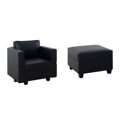 HYLEORY Single Armchair with Ottoman, Modern Corduroy Cloud Couch with Convertible Chaise, Upholstered Sofa Set for Living Room and Office